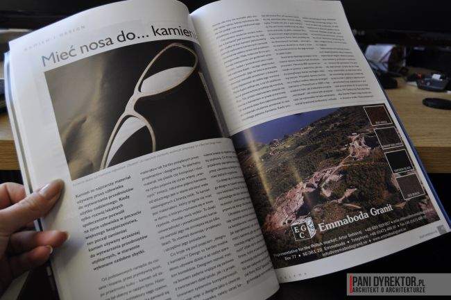 CenaJaka jest cena kamiennego designu użytkowego wytwarzanego przy użyciu technologii XXIw? Jak każdy przedmiot, wykonany z materiału szlachetnego, stworzony dzięki skomplikowanemu procesowi wytwarzania nie może kosztować mało. Można by oceniać czy 4 tysiące Euro to dużo za przedmiot pretendujący do miana sztuki czy niewiele. Taka jest jednak cena kamiennych opraw okularów, a popyt na nie stale utrzymuje się na wysokim poziomie.