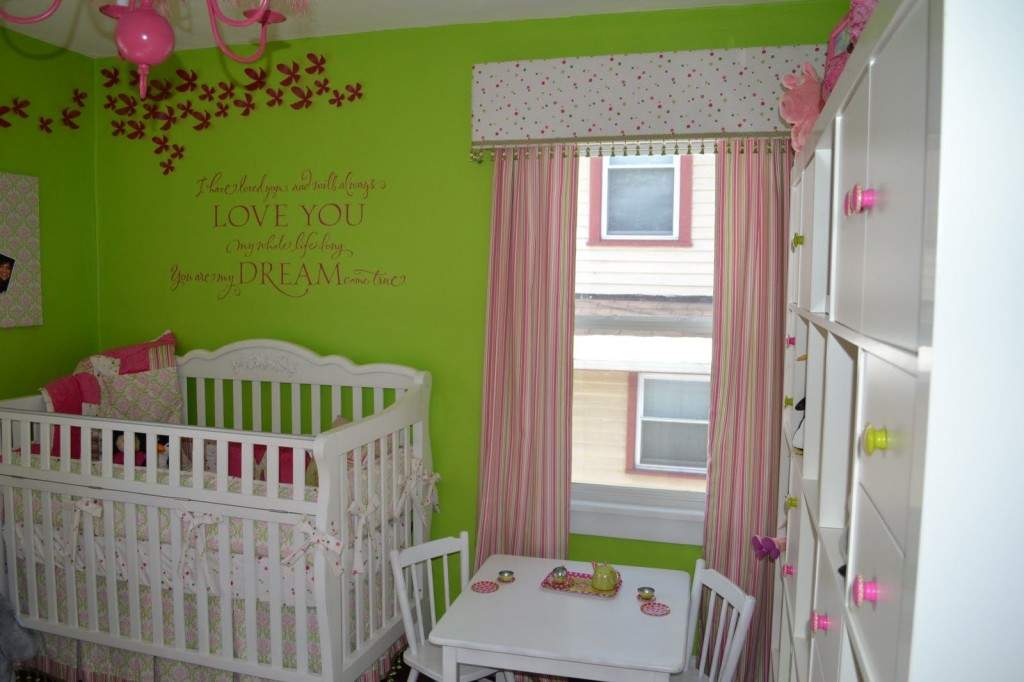 Pudrowy róż na ścianach ciężko dobrać tak, by nie był .. straszny ;] Rozwiązanie dla Ciebie to – groszkowa energetyzująca zieleń i lekkie różowe pasy.