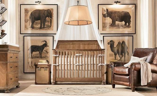 Nie lubisz kiczu w designie niemowlęcego pokoju? Lubisz podróże? Pokój dla niemowlaka może być pokojem maleńkiego odkrywcy. Może dziecko nabierze przez osmozę ochoty na podróże? (Zdjęcie: Mellanie Design)