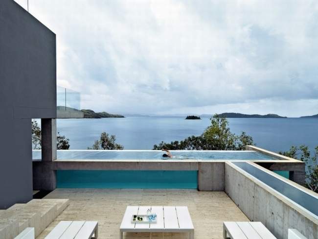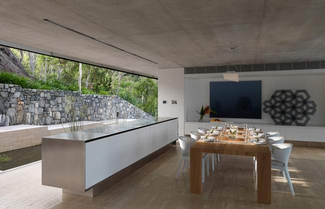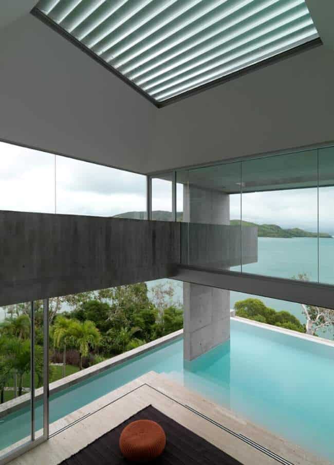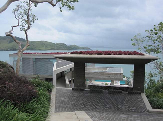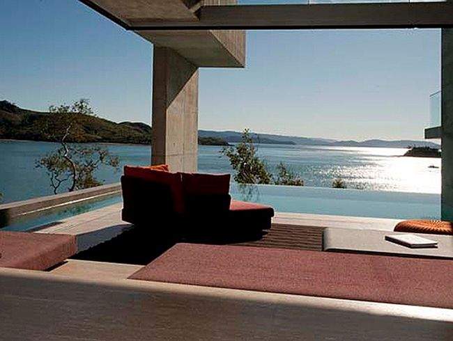 Takich oszałamiających, zapierających dech w piersiach widoków jest w tym luksusowym domu więcej! Zainspiruj się!Zwróć uwagę jak zaprojektowane zostały dachy tego nowoczesnego domu. Wszystko tutaj jest bardzo proste, surowe w formie. A na dachu…Roślinność wodna znajdująca się na dachu w części domu – czyż nie jest urocza? ;] maleńkie australijskie odpowiedniki nenufarów!Zachód słońca z perspektywy i poziomu luksusowej rezydencji Solis w Australii – przy okazji zwróć uwagę na formę zewnętrznej rzeźby – mała architektura stanowi uzupełnienie całości projektu domu!Projekt luksusowego domu to wykorzystanie w projekcie zalet działki i lokalizacji. Zobacz jak zorientowany został luksusowy dom Solis Residence i zainspiruj się! Ta nowoczesna rezydencja otwiera się na wybrzeże wyspy i pobliską zatokę. Dobrze w takim miejscu zorganizować sobie np. miejsce do czytania ;]Nowoczesna, luksusowa willa marzeń zaprojektowana w harmonii z otaczającą naturą – Solis Residence w Australii.Część dzienna czyli kuchnia i jadalnia, które mają możliwość całkowitego otwarcia na zewnętrze domu. W oddali taras ze zorganizowanym zewnętrznym miejscem do wypoczynku ;]
