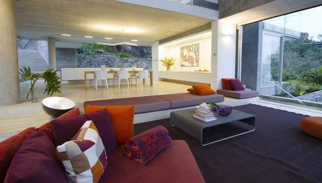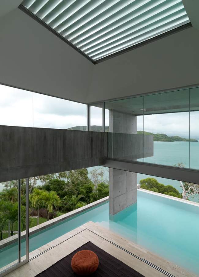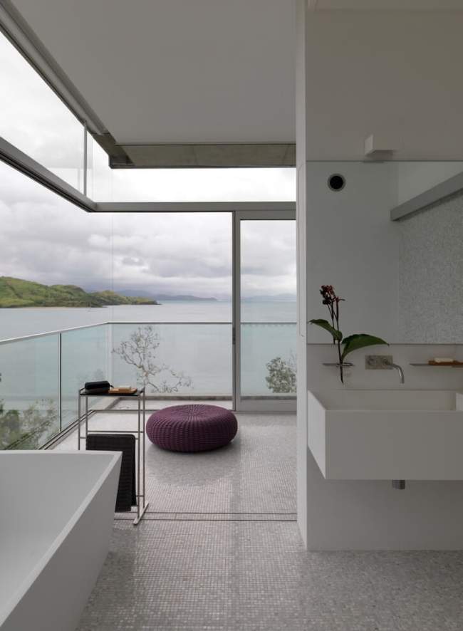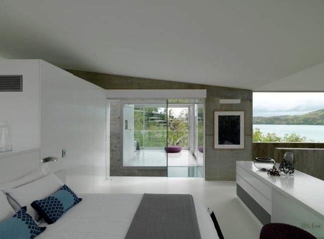 Proste, ortogonalne rozwiązania, dużo szkła i betonu, dużo przestrzeni, spektakularne otwarcia z widokiem na zatokę.