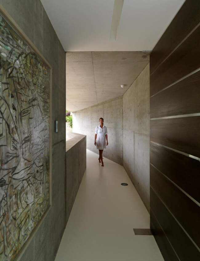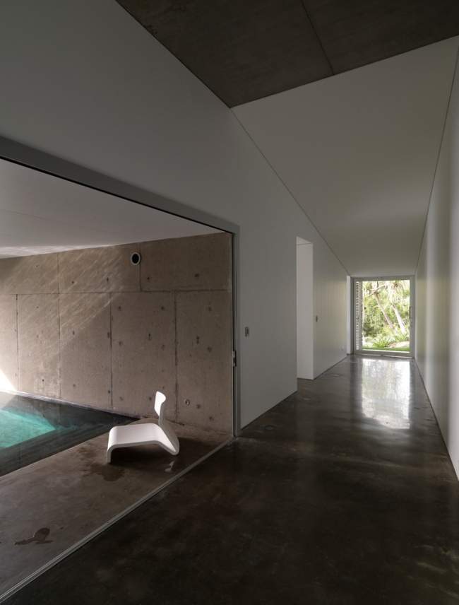 Widzę taki kadr i już się nie mogę doczekać tego, jak wygląda pozostała część domu! ;]Tak Drodzy Czytelnicy Pani Dyrektor – ta luksusowa rezydencja posiada piękny, oszałamiający widok z okien, świetną lokalizację i działkę ;] Wiem, że to trochę inaczej niż ostatnio się umawialiśmy :P ale nie mogłam się powstrzymać! Chyba raz na jakiś czas będziemy sobie robić takie odstępstwa ;] Mimo wszystko sama architektura domu jest równie zachwycająca!Nowoczesna, monolityczna betonowa bryła i ortogonalne rozwiązania. Zainspiruj się!Widok na wewnętrzne patio Solis Residence.