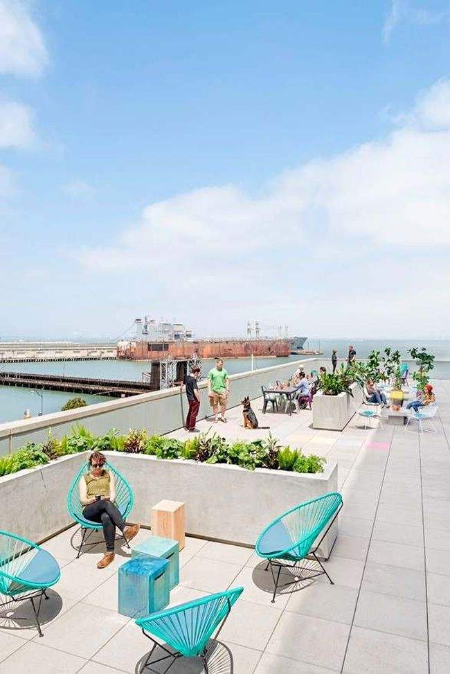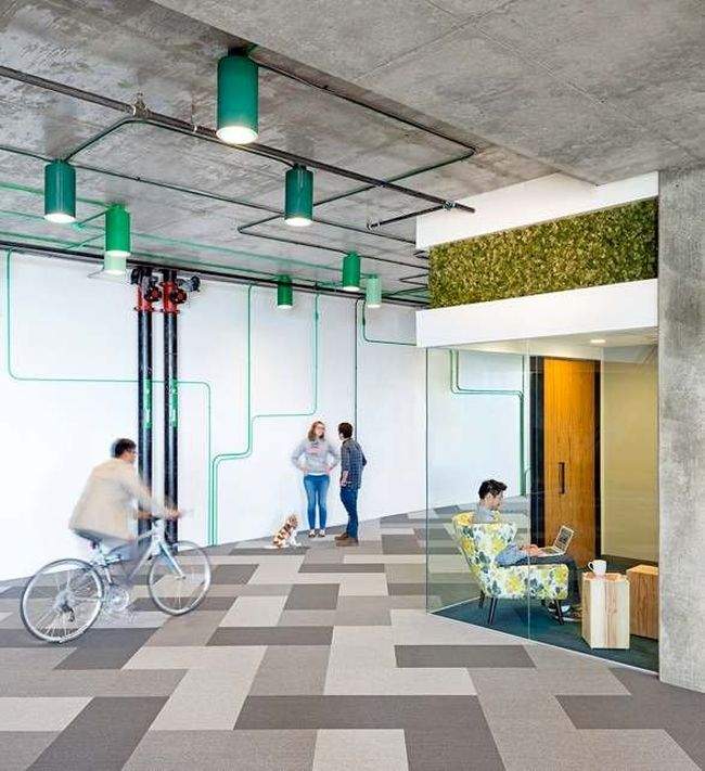 Szeroki korytarz biura pozwala na aranżację różnego rodzaju miejsc siedzących. Zwróć uwagę jak kolorowo jest w tym miejscu!Szkło, drewno i intensywne kolory sprawiają, że wnętrze biura wygląda bardzo nowocześnie. Na zdjęciu powyżej widzimy również sąsiadujące ze sobą miejsca pracy o różnym charakterze a przez to o odmiennej organizacji.Projekt nowoczesnego wnętrza biura siedziby Cisco w San Francisco – zainspiruj się zielenią we wnętrzu!Nowoczesne biuro to nie tylko dobrze zorganizowane i urządzone miejsca pracy, ale również kreatywna strefa socjalna, która mieści część wypoczynkową, przeznaczoną dla relaksu i odpoczynku. Zawsze przecież w przerwie w pracy możesz nauczyć się grać np. na gitarze lub pianinie ;]Zewnętrzna strefa wypoczynkowa zlokalizowana na tarasie z widokiem na zatokę w San Francisco. Prosty lekki design i przyjemne otoczenie idealne do rozmów z klientami lub…… z kolegami z pracy ;] Nowoczesny design betonowego siedziska uzupełnionego zielenią – jestem na tak!