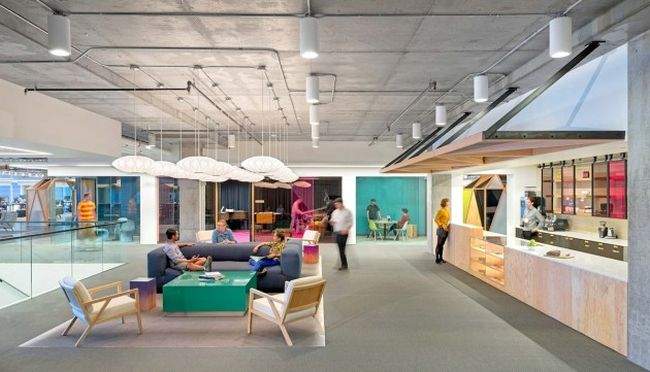 Nowoczesne wnętrze biura siedziby Cisco w San Francisco.