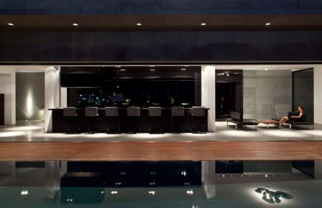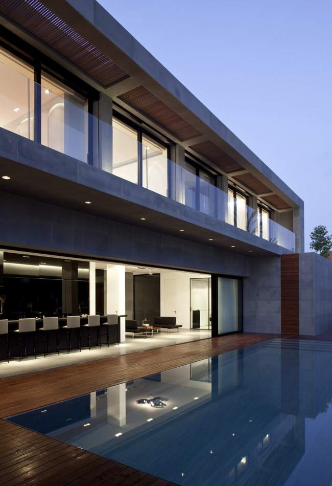 Od strony sąsiadów i drogi dom przybiera surową, niedostępną, betonową formę. Pamiętacie Jardin del Sol na Teneryfie?;]Nowoczesna architektura to zacieranie się granic wnętrza i zewnętrza budynku.Dom z basenem umiejscowionym we wnętrzu centralnego dziedzińca.