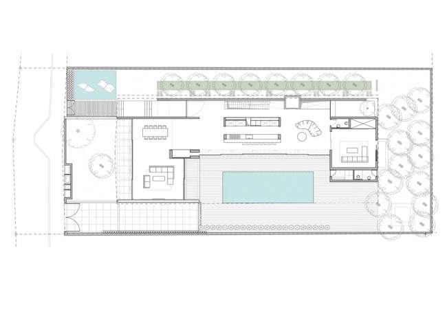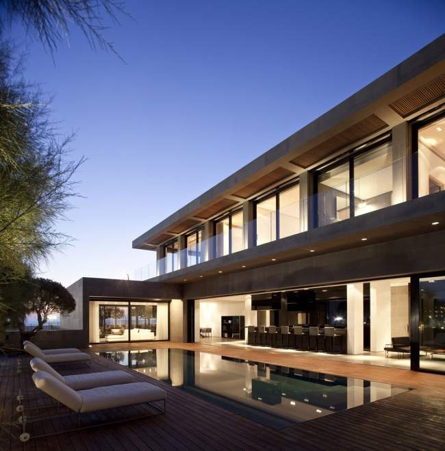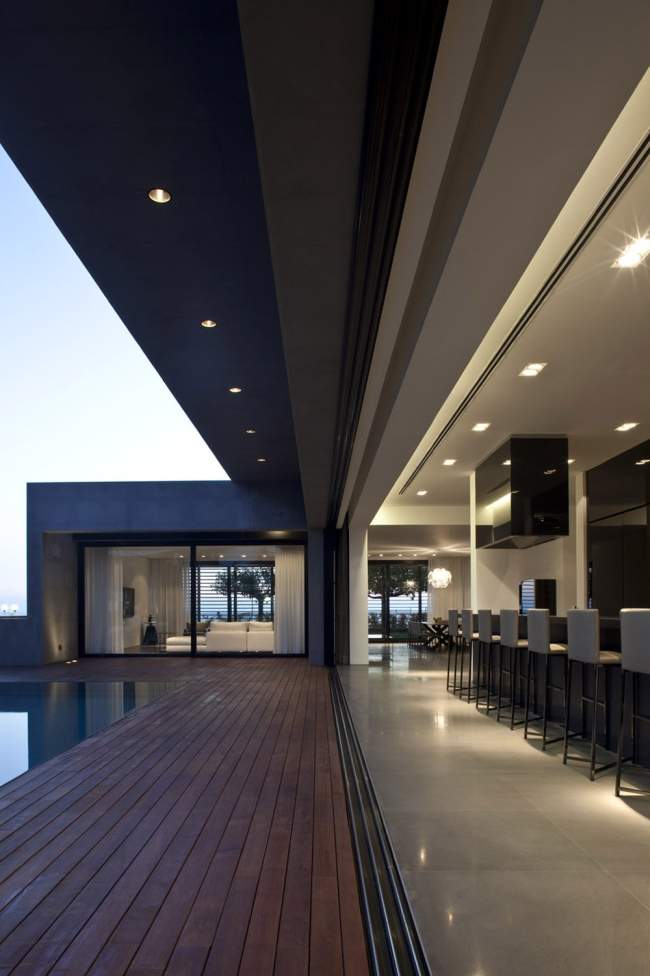 Nowoczesny dom został wybudowany jako dom wakacyjny dla rodziny mieszkającej za granicą. Położony jest nad wybrzeżem w centrum kraju. Na bryłę tej luksusowej willi składają się trzy części budynku, ułożone w ten sposób, aby pomiędzy nimi powstał dziedziniec wewnętrzny, w którego centrum usytuowano basen.