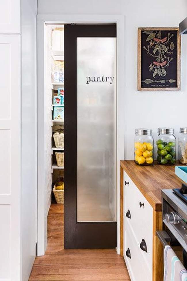 Rozsuwane drzwi zamiast rozwieranych oszczędzają przestrzeń kuchni. (Zdjęcie: Von Fitz Design)Tutaj drzwi do spiżarni z kieszenią, przesuwne w ścianie – idealne dla niewielkich metrażowo kuchni. Taka spiżarnia do podręczne miejsce dla wielu rzeczy! (Zdjęcie: The House That AM Built)