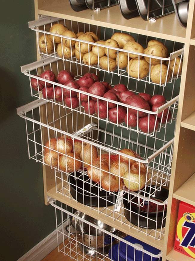Organizacja czyli jak w pełni wykorzystać miejsce w swojej spiżarni. Zobacz przydatne rozwiązania i nietypowe pomysły, które mimo iż proste, w znaczny sposób ułatwią Ci korzystanie z Twojej spiżarni. Zainspiruj się – taka spiżarnia może być również w Twoim domu ;] Prawidłowa organizacja i konsekwencja to klucz do sukcesu. (Zdjęcie: Design Sponge)W tak posegregowanej spiżarni na pewno nic się nie zagubi – wykorzystaj kosze, słoiki, pojemniki, aby utrzymać porządek w swojej spiżarni. (Zdjęcie: Domesblissity)