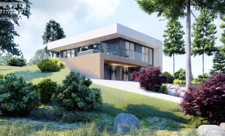 - Minimalistyczny dom z płaskim dachem na skarpie – DOM MARZEŃ A0237