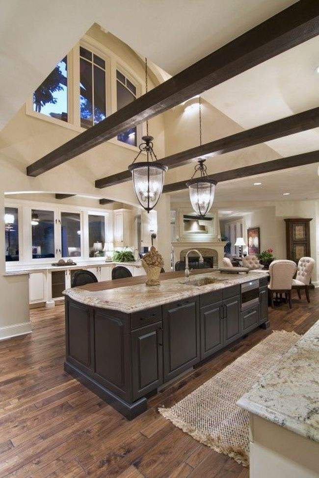 - Domy amerykańskie i ich układ dość skomplikowanej więźby daje dużo możliwości do otwarcia przestrzeni nad salonem czy kuchnią w niekonwensjonalny sposób.