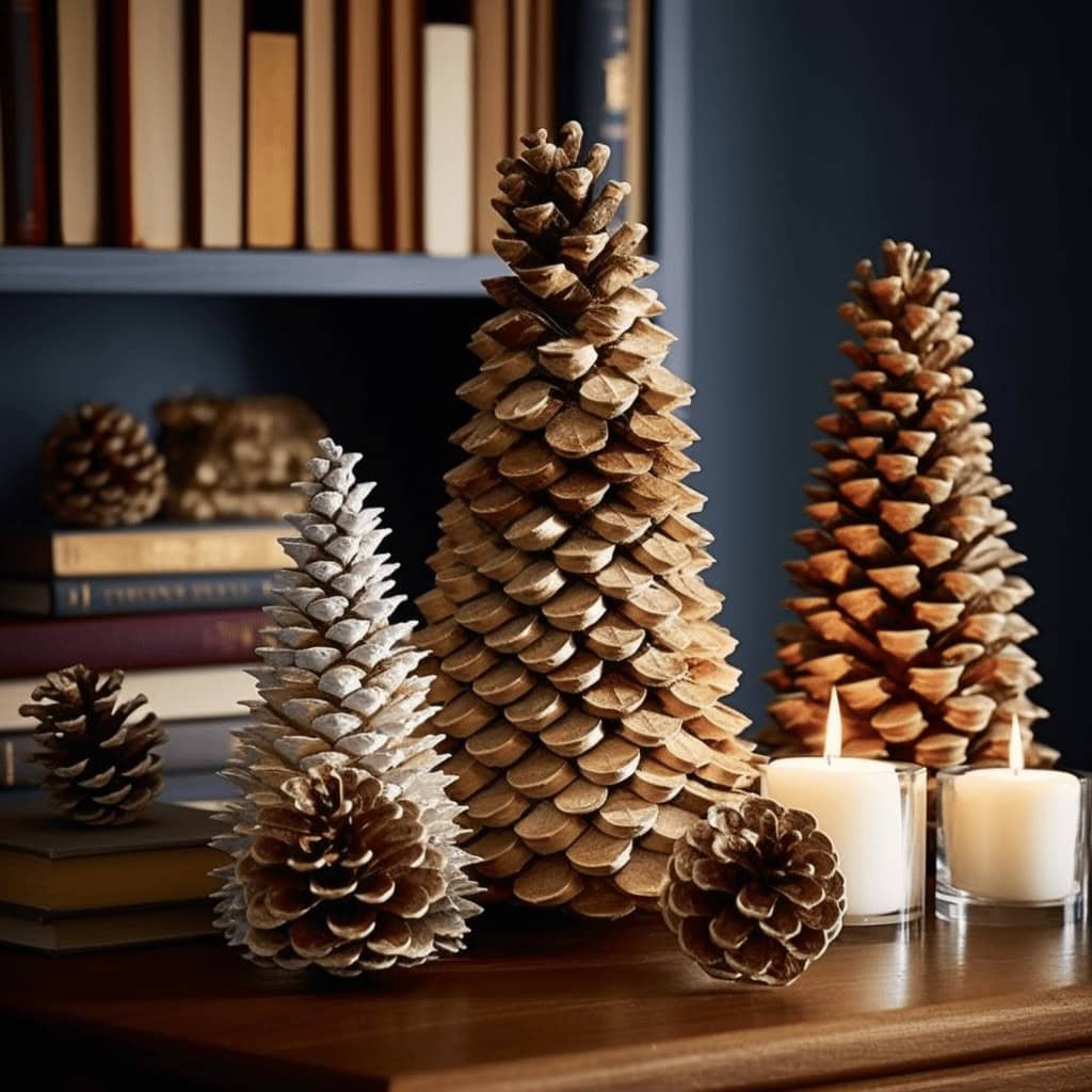 – wykorzystaj dary natury – np. SZYSZKI – nazbierane w lecie, oczyszczone i pospreyowane złotą i srebrna farbą to piękna ozdoba (na lata!). (Myśląc “na zapas”? W 2007 nazbierałam we Włoszech cały wielki wór pięknych ogromniastych szyszek, pomalowałam i co roku do dziś używam – są tak samo piękne!)