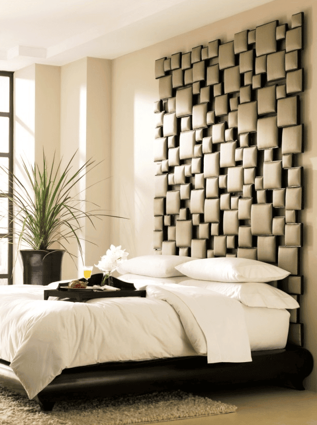 Ławeczka za łóżkiem to wspaniała sprawa! Możesz na niej poczytać, pomalować paznokcie u nóg, położyć ubrania… Jednak nie praktykujemy w Polsce takiego rozwiązania. Dlaczego? (Zdjęcie: Eric Piasecki) Schowek w wezgłowiu łóżka? Bardzo praktyczne rozwiązanie ;] Napisy na ścianie – jeszcze odważniejsze! Panele skórzane za wezgłowiem łóżka mogą być przeróżnie pikowane. Nie lubisz “puszystych” fotelowych pików? Wybierz proste, nowoczesne kwadraty! (Zdjęcie: Giorgio Baroni) Szukasz sposobu na stylowe wezgłowie łóżka?