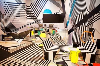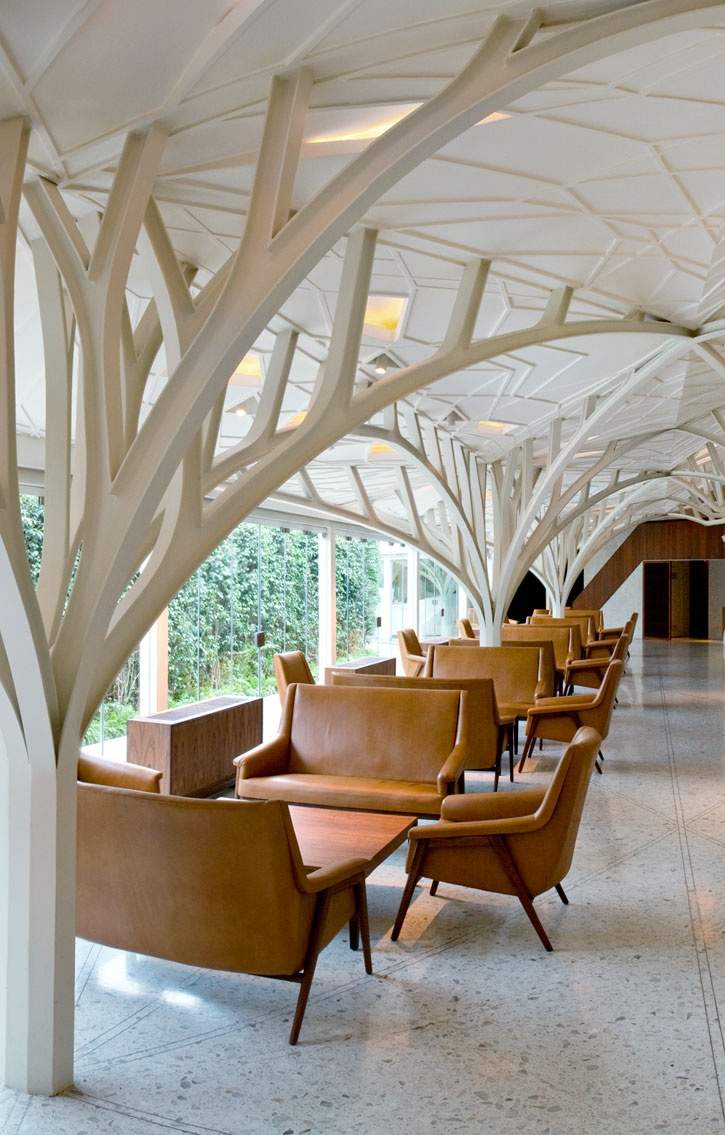 Design w formie białych wstążek dominuje kawiarnię w hotelu St. George Lycabettus w Atenach – zaczynając się od ścian biegnie poprzez stoły, aż na podłogę. Taki wystrój wnętrza przyciąga wzrok stanowiąc doskonały kontrast z ciemno-szarym marmurem.