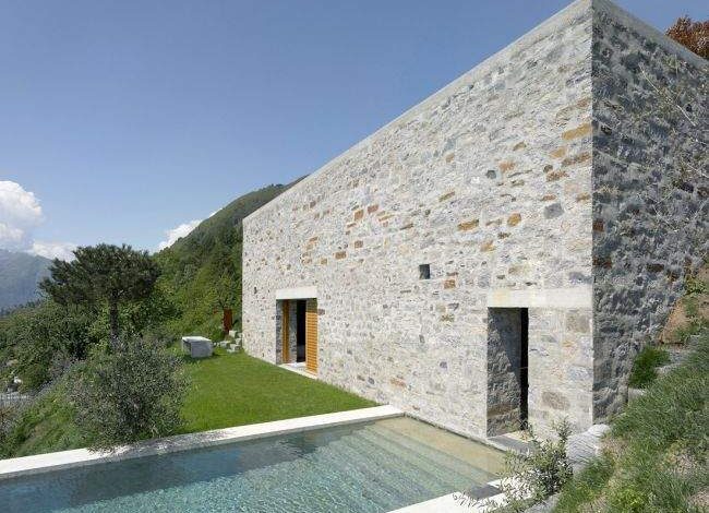 Rezydencja z kamienia mieści się w ogromnej strefie, mocno zurbanizowanej, w pobliżu Locarno. Widać od razu, że cała konstrukcja jest swego rodzaju punktem przejściowym między dość wyraźną przestrzenią miejską a rozległymi widokami pełnymi naturalnego dobra, które mogą podziwiać mieszkańcy willi. Trzeba przyznać, że otaczające dom góry i jezioro bardzo kontrastują z chaosem miejskim! Właśnie dlatego inwestorzy zapragnęli mieszkać w swoistej oazie spokoju.